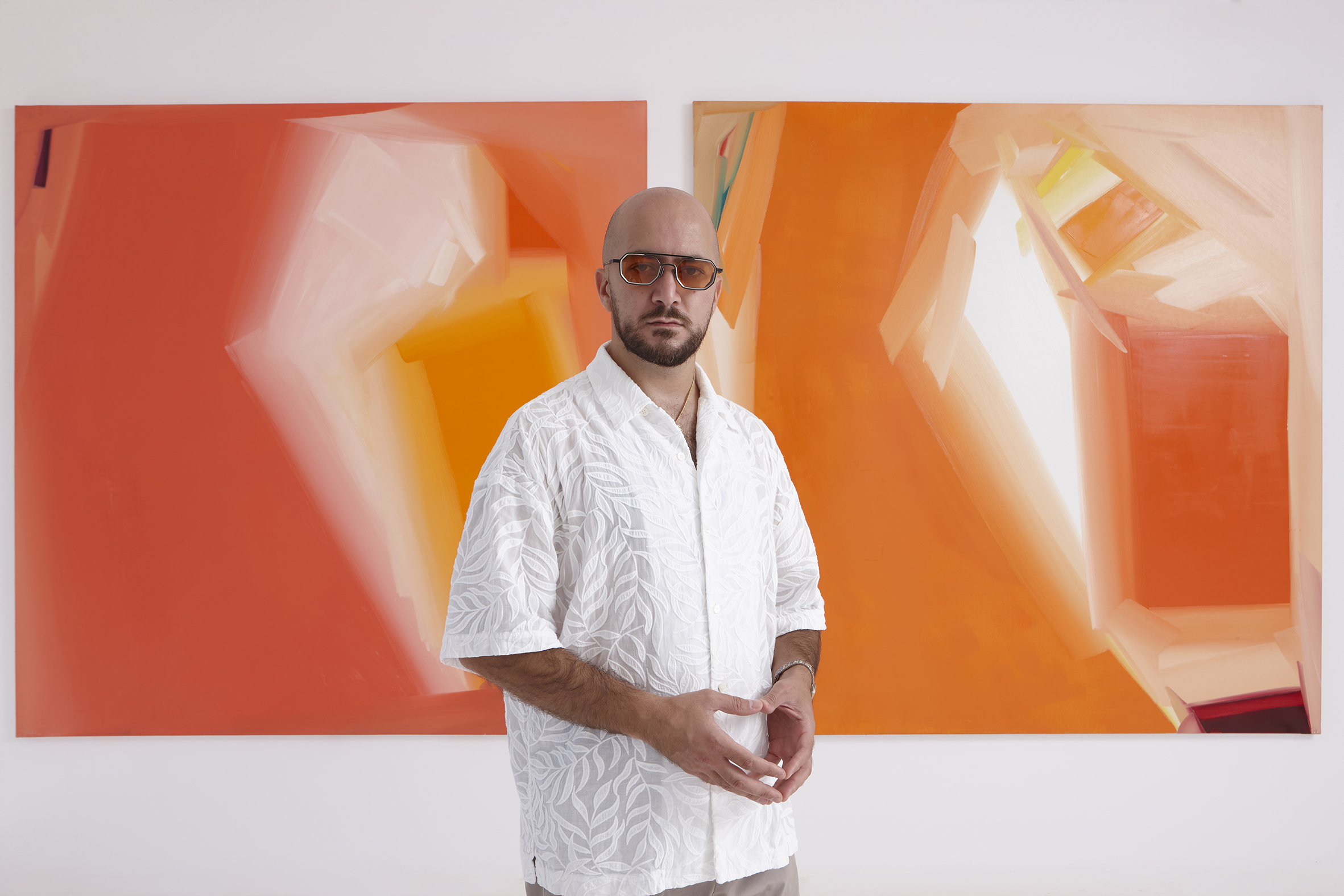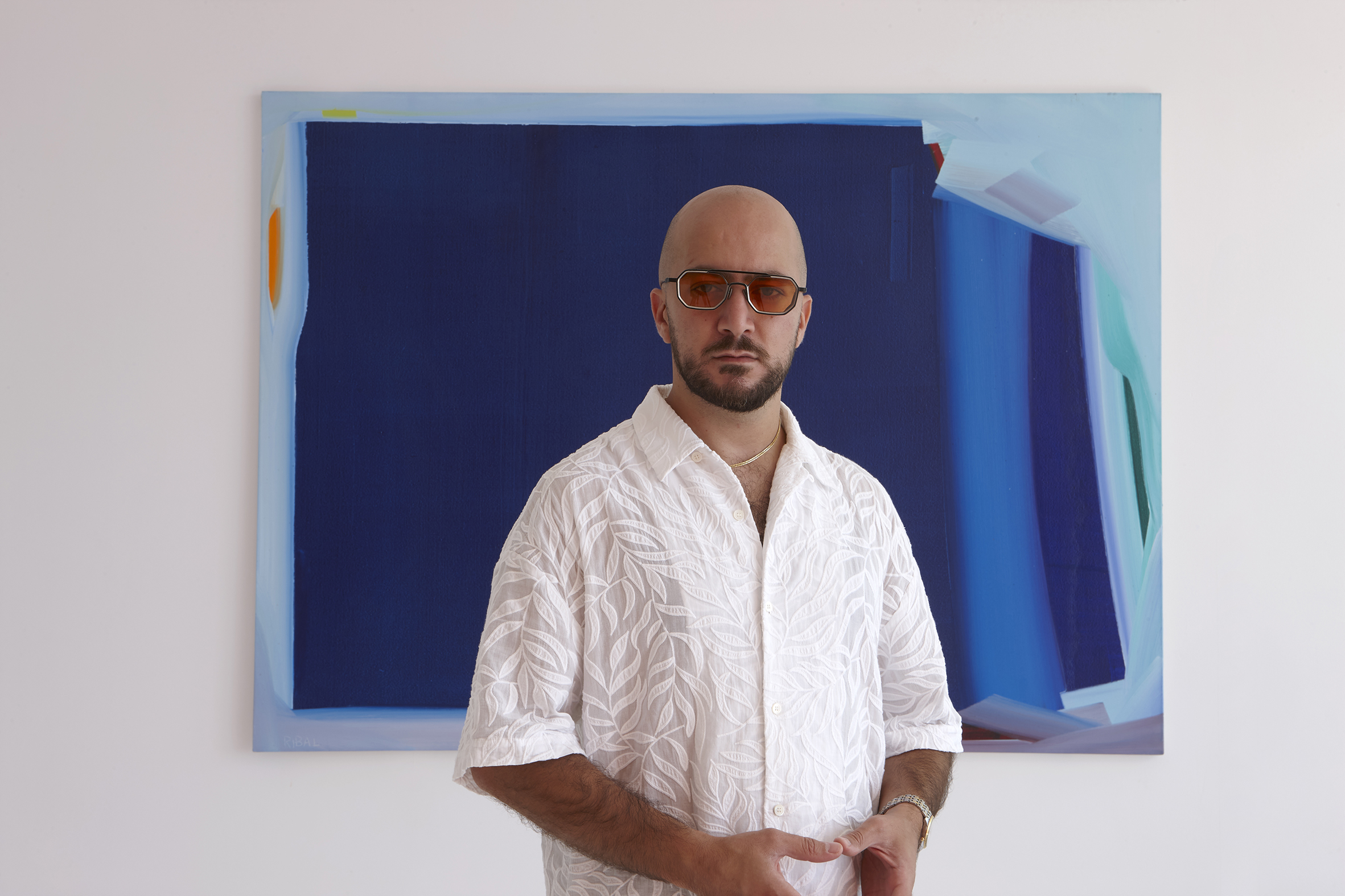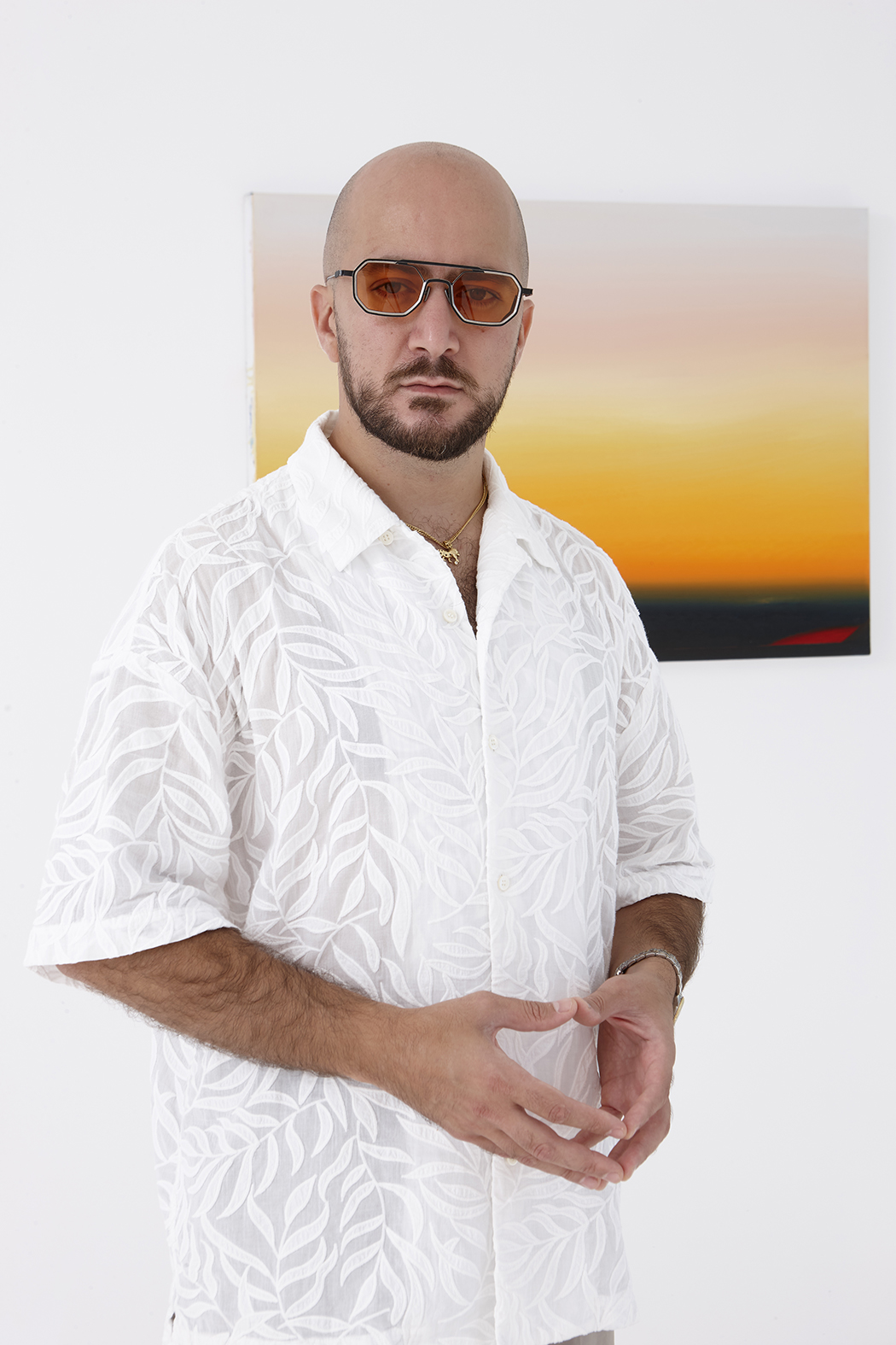 In his early age, Ribal Molaeb was personally trained by his father Jamil Molaeb. He is also inspired by Lebanese 20th century abstract expressionists like Saliba Douaihy, Aref el Rayes and Shafic Abboud. Ribal Molaeb captures the serenity and immaculate beauty of nature: the sunrise viewed from one’s home, the initial moments of optimism at daybreak with its gradual spectrum of hues. A mystical, undulating mountain. An unobstructed horizon illuminated yet firmly rooted, devoid of concerns. A canvas void of any superfluous elements, offering nothing but tranquillity. Ribal’s artistic focus lies in the interplay and equilibrium of lines, forms, and colour gradations, a trait influenced by his background in classical music and musical education in Vienna that shapes his approach to painting. There is a musical orientation in the compositional, harmonic and melodic aspects of his works.